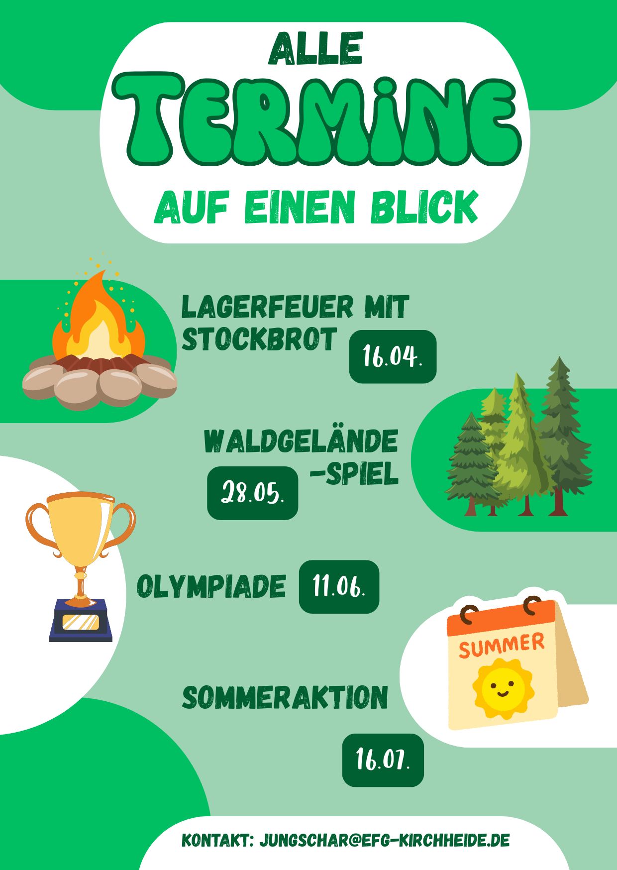 Jungschar Einmal im Monat gibt es eine besondere Jungschar-Aktion,ob Geländespiel, Schatzsuche, etwas zum Selbermachen oder etwas ganz anderes. Dazu gehören Spiele, Gemeinschaft und ein kurzer Impuls aus der Bibel.Komm vorbei – es lohnt sich! Wer? 8- bis 12-Jährige Wann? einen Donnerstag im Monat16:30 bis 18:00 Uhr Wo? Im Untergeschoss der EFG Kirchheide Ansprechpartner Jungschar-TeamKontakt: Luisa WentkerE-mail: jungschar@efg-kirchheide.de Wir freuen uns auf Dich!